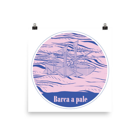 Il progetto di Barca a Pale nacque dalla volontà di Leonardo di automatizzare il movimento della navigazione dopo aver considerato che una corrente d’acqua è in grado di azionare una ruota dotata di pale. Lo stile illustrativo è ispirato ai lavori di Rachel Denti, fortemente caratterizzati da pattern decorativi e colori morbidi.