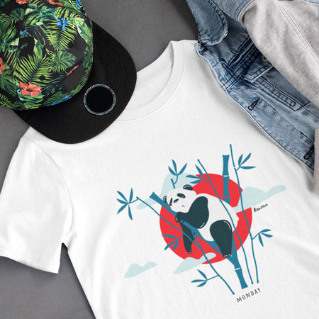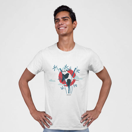 La Sleepy Panda T-Shirt è in cotone (eccetto i colori che contengono poliestere). Viene pre-lavata in modo che la vestibilità rimanga invariata nel tempo e in più cicli di lavaggio.